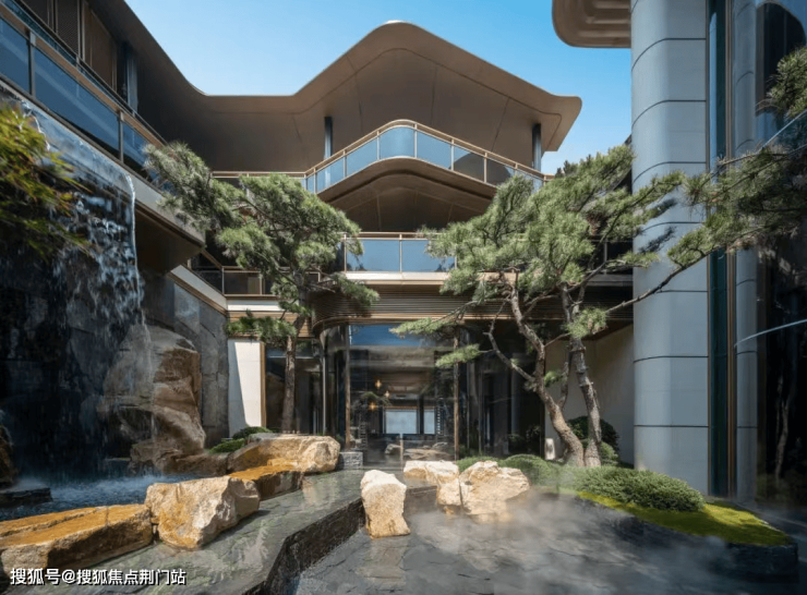 景观则借鉴西湖郭庄,于空间和场景的构建转换之中,植入水、石、松、亭、轩、瀑、桥等一系列传统园林符号,通过精妙的组合,营造充满诗意的栖居环境。