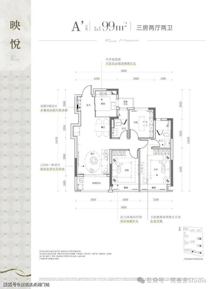 项目总建面约9万方,规划11幢12-16层纯高层,采用"南低北高"的错落布局,建筑限高50米,楼幢间距预计较为开阔,错落式布局,打造了两大主题园林空间。推出建面约99㎡与113㎡精致三居室,以及建面约108㎡、120㎡、128㎡、139㎡宽敞四居室,满足不同家庭需求。