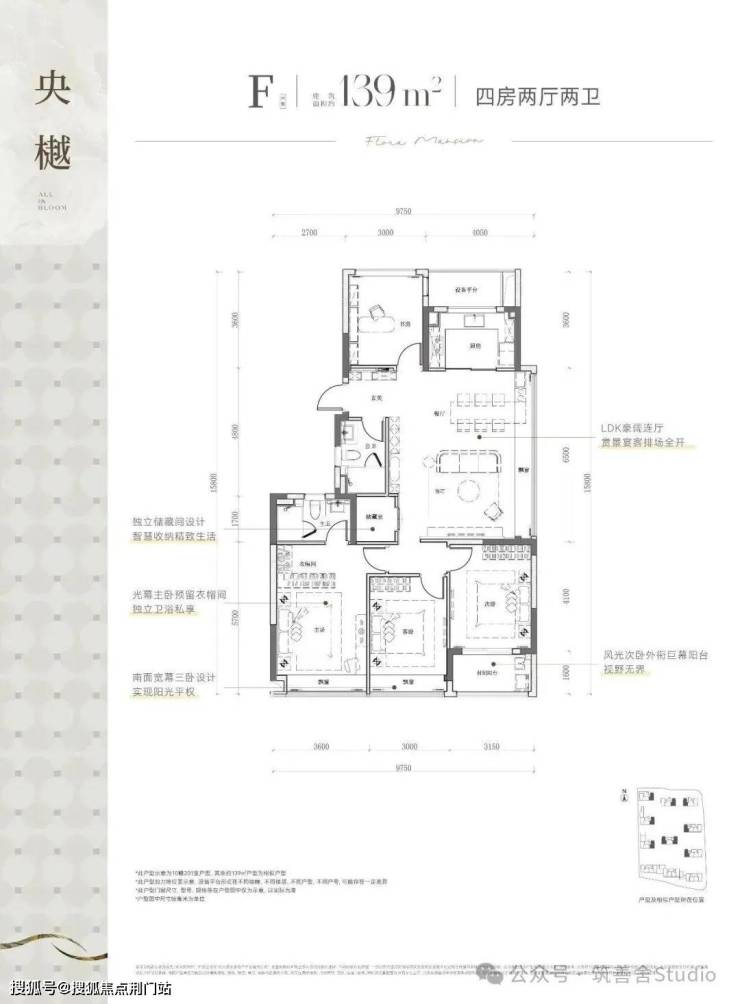 建筑面积约139平米四室两厅双卫户型,以其南向三卧室的宽阔布局、双飘窗与封闭阳台的独特设计脱颖而出。该户型占据小区景观资源核心位置,采用南北通透的整体设计,通风采光极佳。
