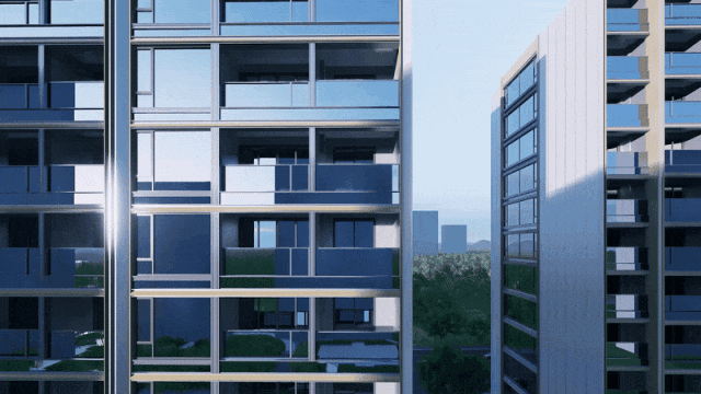 所以它有更迷人的“夜行者美学”(夜晚归家的氛围灯更立体)、更丰富的风雨连廊系统(连廊形态有4种)、更生机勃勃的“活力花园街区”,以及M55系标志性的全龄化社区精装入户门厅精装地库……