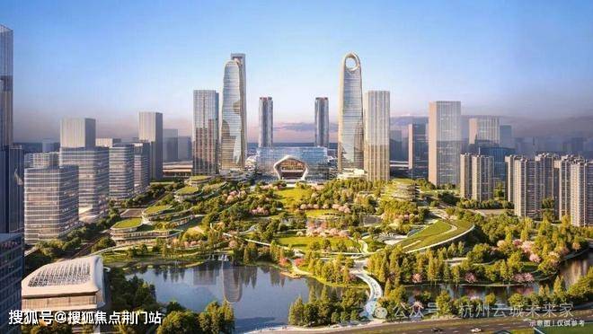 云门公园(直线距离约350米),总面积约30万方,相当于42个足球场,它把江南园林的丘、峰、台、阁都搬了进来,还规划了“公园十景”,未来感十足。最大的特色是有一条巨大的空中绿廊,把西站、办公楼都连了起来。里面还会建青少年活动中心(城西分中心)、文化活动中心、健身中心,户外儿童活动场地还有大片草坪和水系。