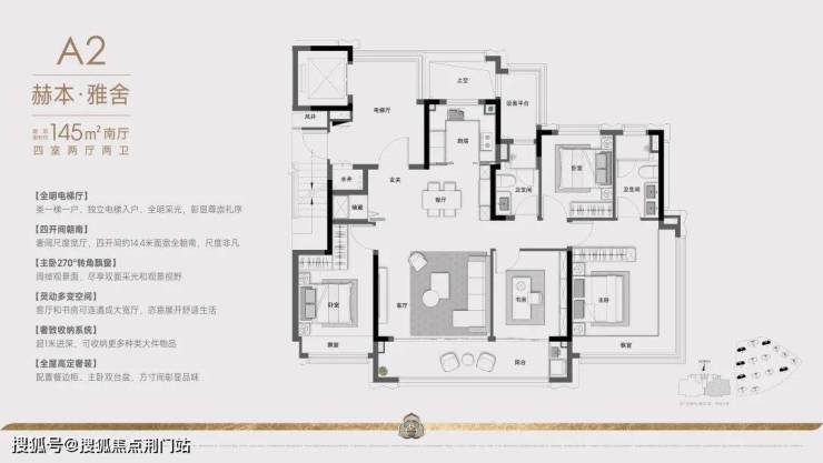这款户型,则站在追求品质改善人群的角度,做出了四房三卫双主套设计。