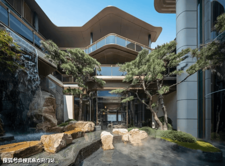 沿大堂而下,第三境的银河叠水便映入眼帘,叠山、理水、松林、亭台的错落组合,营造出“立体山水”的沉浸式体验。其中,双飞瀑的设计在当前杭州市场并不多见,15米高的飞瀑加上1.5米宽的瀑布,在缓流与急流间,动静相宜,一幅灵动的山水画卷徐徐展开。