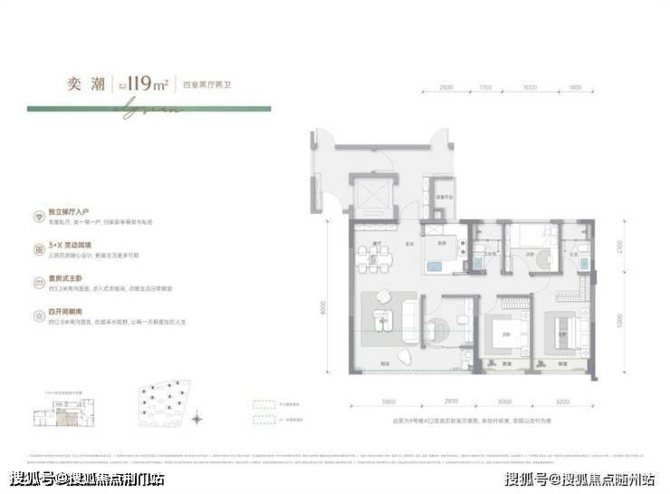 四开间朝南:约14米奢阔面宽,阳光满室铺展