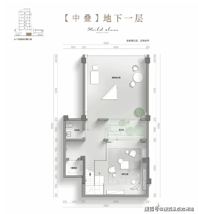 上叠没有很大的地下室,但是仍然有一个精装夹层。同样是带采光井,底下直通自己的地下车库。
