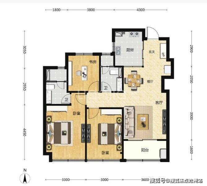 02.全三套房朝南的户型