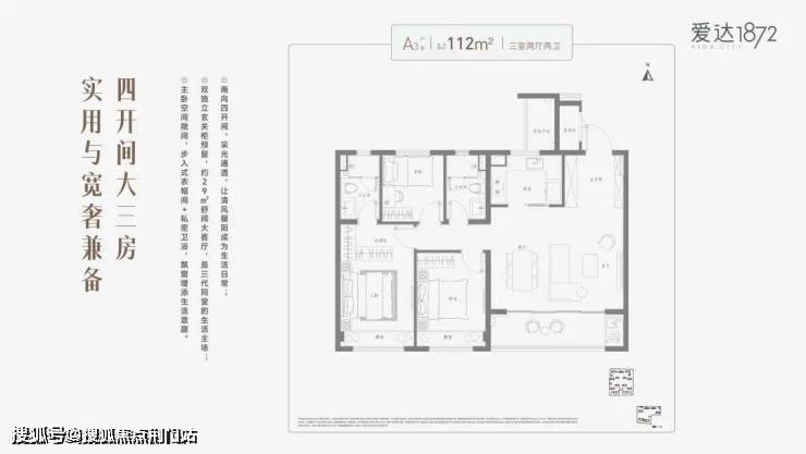 招商蛇口·爱达1872建筑面积约112㎡三室两厅两卫,以科学合理的规划笔触构筑一所“会生长的房子”,匹配家庭的每一个成长阶段。奢阔四开间,让舒适遍布于生活的每一寸肌理之间。