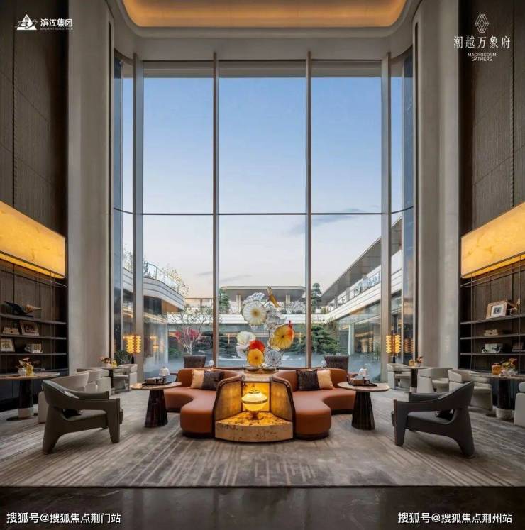 潮越万象府请了gad蒋愈、OGA邓代明、朴悦郭子伟三位大师,在示范区里下了血本。约37米进深的归家门头,灵感源自迪拜卓美亚港湾酒店,六棵变异银海枣价值超百万,头顶的“金顶官檐”与萧山开元大酒店遥相呼应。