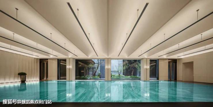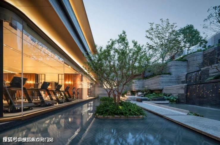健身房、瑜伽馆、恒温泳池位于生活馆一侧地下一层,全景落地窗将下沉庭院自然景观引入室内,让生命在律动中与自然同频。