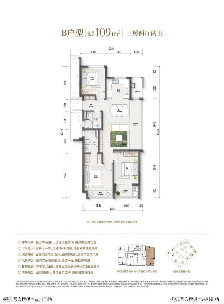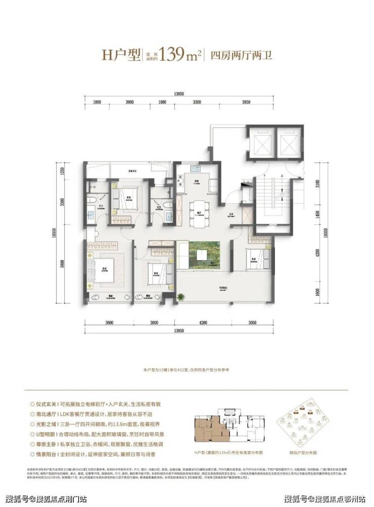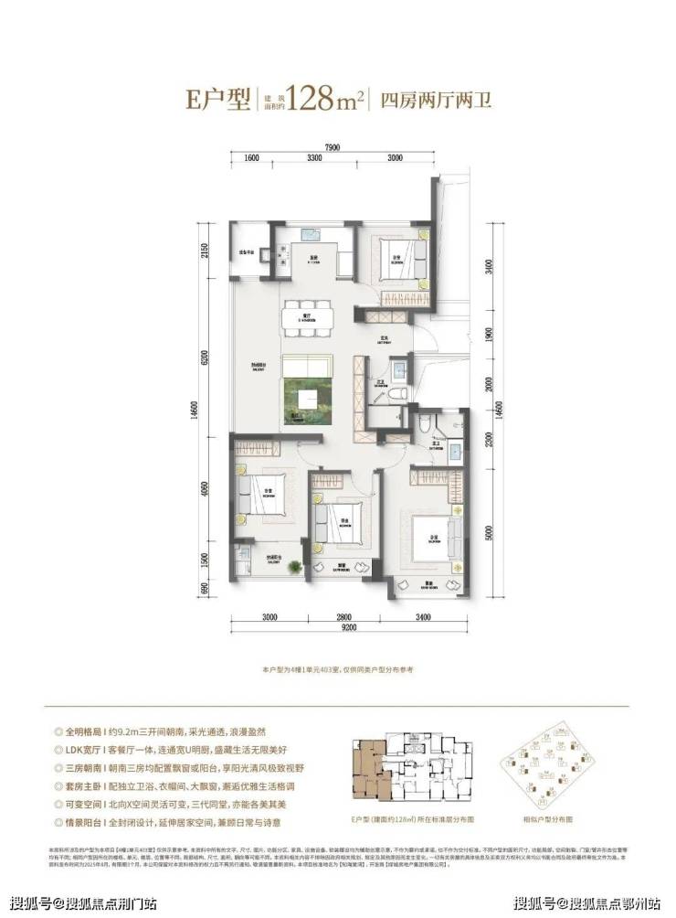 (四房户型,滑动查看更多户型图)