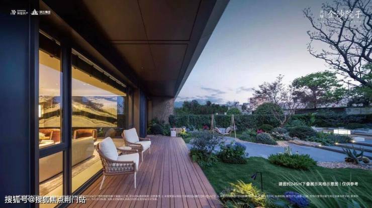 下叠地下+地面两层,共计三层,却变魔法式的做出“三重院“——每层都带一个庭院,地下是下沉式庭院,一层是天然花园,二层的大阳台也足以装饰成庭院。市面上的叠排院子面积一般也就40-80m²,金沙院子却做到了这个大小的2-3倍,甚至超过了很多排屋和别墅的院子。
