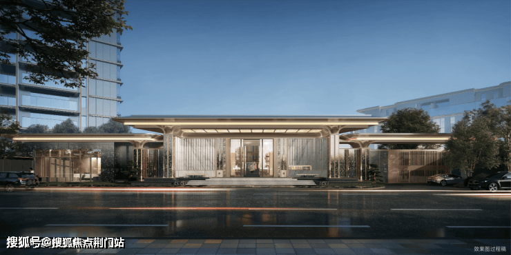 不是传统的新中式,而是采用了更加现代化的表达,大面的落地玻璃搭配金色铝板石材,质感更加轻盈,曲面玻璃+维多利亚奢石点缀,在当下的排屋市场很少有,更符合高端人群的审美。