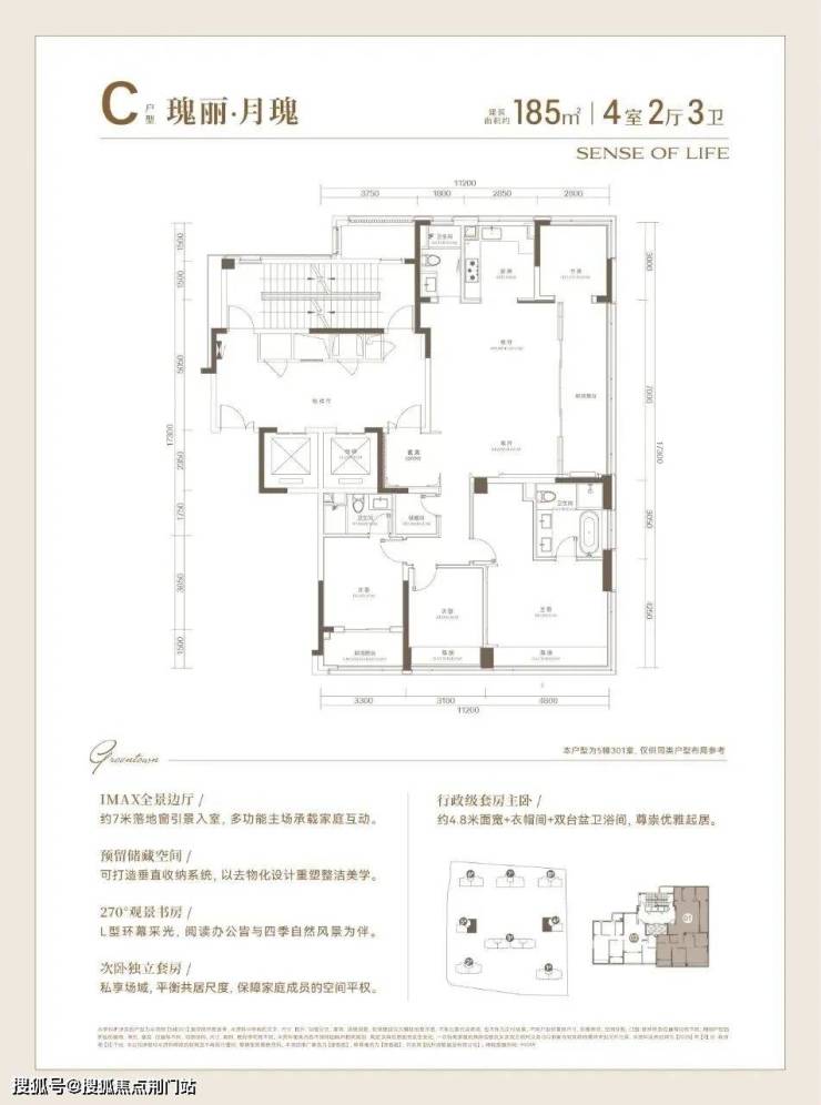 建面约185方户型,高品质的寰景奢宅: