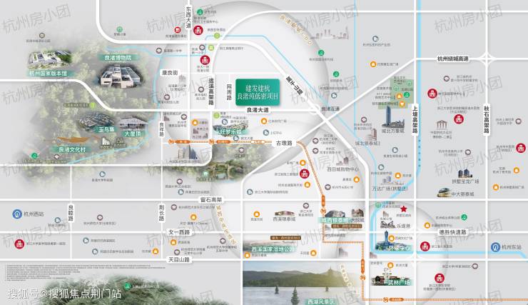 低密纯墅居,离尘不离城项目西邻良渚文化村(大屋顶、玉鸟集旁),占据板块内优越位置,坐拥水到渠成的醇熟生活配套,出门就是繁华场,近距离享受良渚文化村所有内部、外部配套。