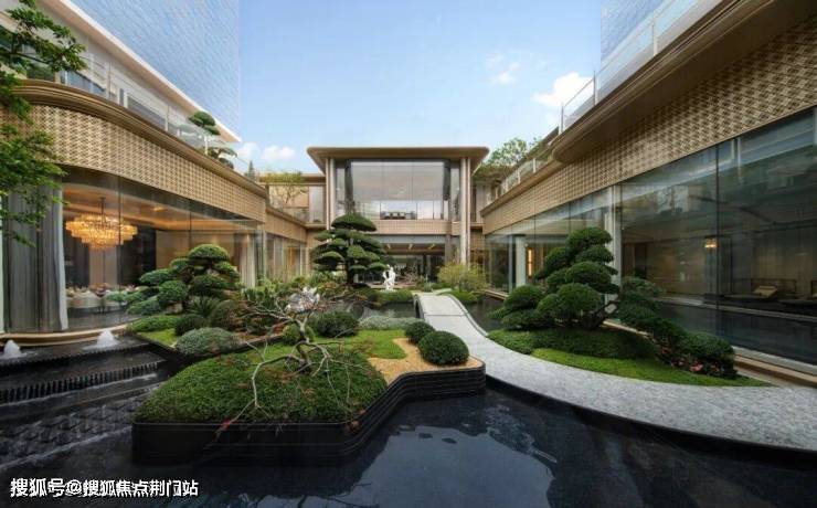 而豪宅圈人称「小宋总」的宋淑华先生,更是把众多奢华酒店的景观设计理念,融会贯通到了浩运府,中心水系汲取了苏梅岛六善酒店的灵感,下沉庭院看得到京都安缦庭院的模样,大草坪像极了伦敦圣詹姆斯公园的中心草坪,而用芳香花卉编织的“嗅觉盛宴”则来自新加坡植物园的营造灵感。