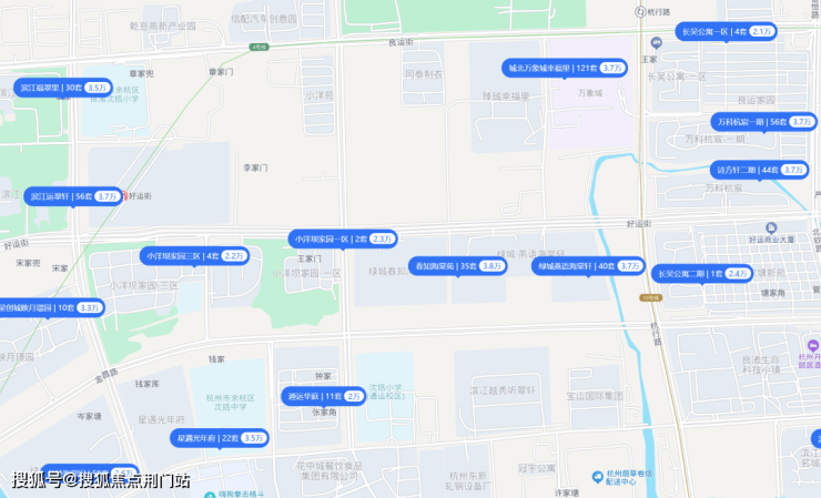 隔壁就是滨江万家名城、越秀星尚汇城等热门二手小区,南面直线约400米就是万科杭行道,直线约600米是10号线祥园路地铁站,直线约1.3公里是万达广场。