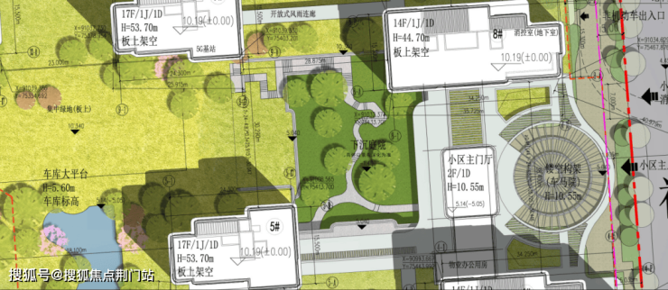 小区正大门位于东侧,也就是万家名城一侧,圆形镂空构架看起来会非常壮观: