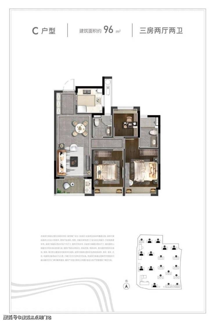 ✅ NO.4 | 户型图🔥 中间套96方和90方均为三开间朝南户型c户型 进户门设计玄关+U型厨房,客餐厅相连,且客厅连接南向阳台,迎接采光。整体三开间朝南加两个明卫,南北通透;卧室均带飘窗,增加物体摆放空间。