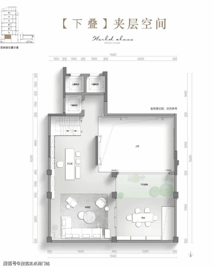 它不仅不输别人客厅的层高,还带一个可走入的约30㎡下沉庭院。