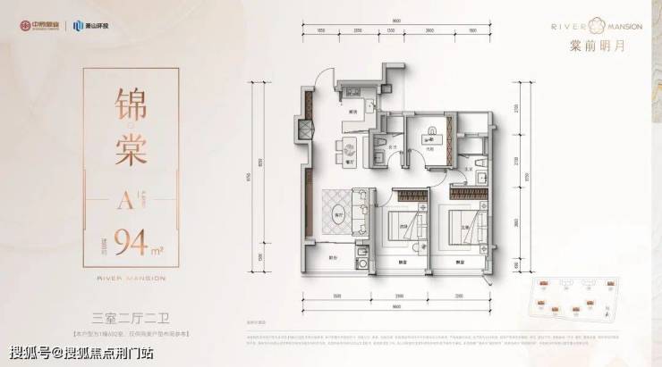 建面约94方三房两卫: