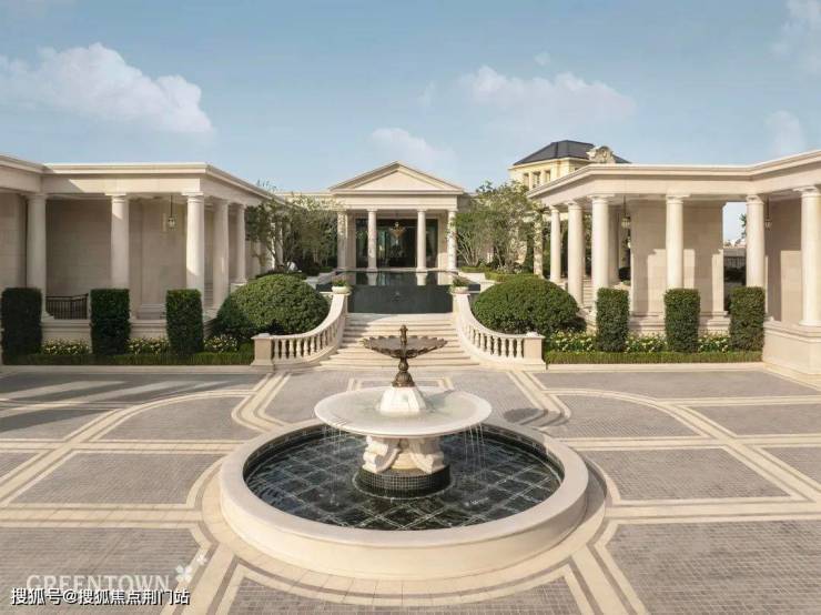 绿城·溪径恒庐做出了一条约200米的沿街界面:从楼盘大门口的喷泉广场,到沿街柱廊,一直贯通到「雅典卫城」会所。你一看这条「大门-柱廊-会所」的沿街界面就知道,这是一个价值非凡的低密楼盘。