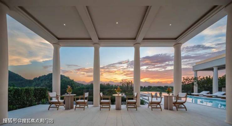 ▲柱廊、池水、群山的日与夜,绿城·溪径恒庐,杭州,实景图