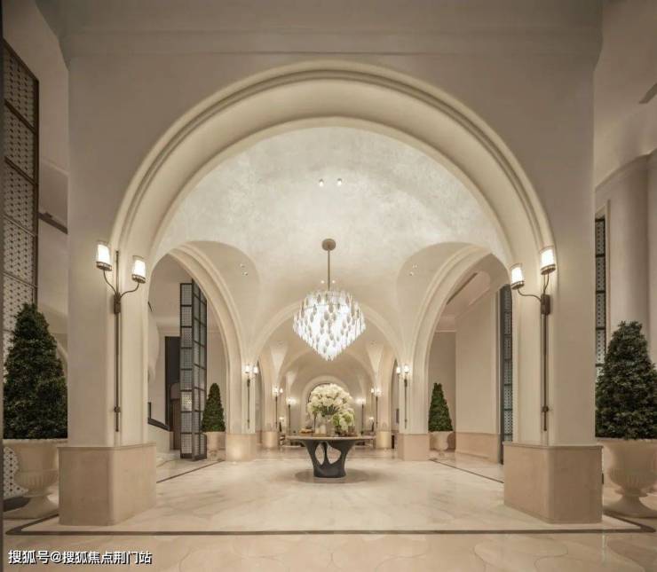 真正强大的气场,不是靠建筑的宏伟或空间的辽阔,而是来自于更宜人的空间尺度。惯常的 「横向铺展」,带来威严;这样的「纵向深入」,则会带来更多的闲适与温馨,这种情绪由轻盈的柱廊不断抬升,不断推进。