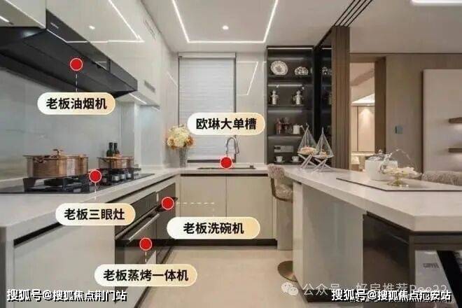 厨房:老板油烟机、三眼灶、蒸烤一体机、洗碗机四件套齐全;欧琳的大单槽,方便锅具等大厨具清洗。