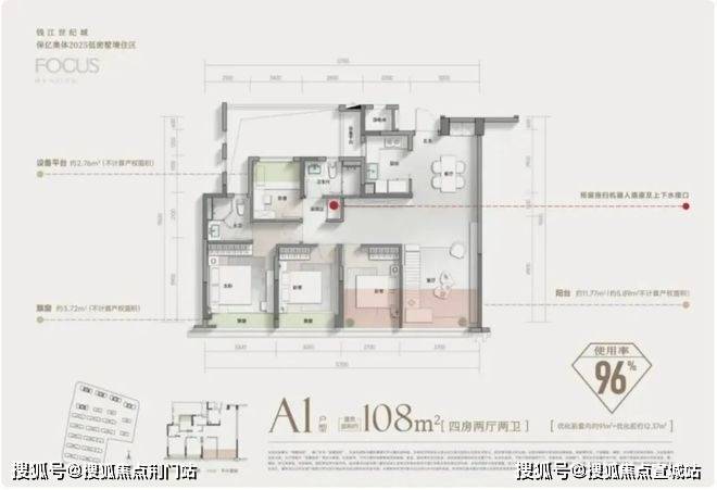 4房灵动布局(北面小房间面宽都有约2.4米),让建面约108㎡的户型,也可实现3.7米面宽开阔竖厅,让一个入门级小户型,也有约40㎡餐客厨空间,更可谓逆天设计了。要知道,哪怕当下新规产品层出,这个尺度也是少见的。