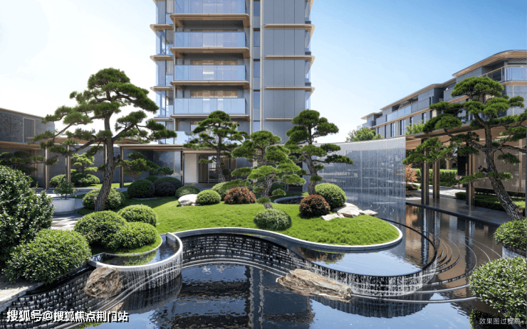下沉式庭院中,有假山叠石、瀑布水帘,美轮美奂,氤氲着豪宅的府邸气象