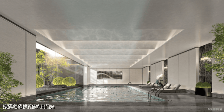 另外,在园区配套方面,会所面积竟然有约1600方!内部有恒温泳池、健身房等,而且恒温泳池边上是大面落地玻璃,正对着下沉式院落,像一幅巨画一般壮观。