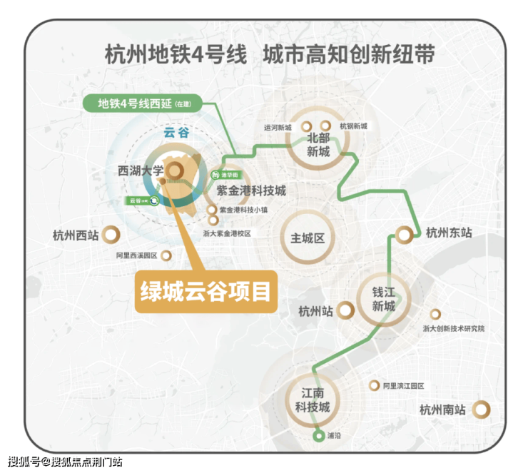 交通上已经配套先行,有地铁4号线延伸段(在建),可串联云谷、西湖大学、火车东站和钱江新城,既是高知创新纽带,也让出行高效方便。