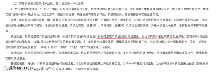 说所前的地铁规划铁板钉钉,还有一个证据。在去年9月绍兴发布综合交通运输发展「十四五」规划中,绍兴提出:绍兴2号线与杭州所前区域的轨道交通对接。