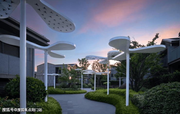 盛夏之际,耦贤里园区内树木葱郁,蝉鸣阵阵,远山浮云,好一派风景与建筑的写意画作。蓝天白云下,每一个处景观,每一个雕塑仿佛都有了自己的语言,亦或用喷泉搭配出自己的韵律,小满的氛围感栩栩如生;破土出芽,把进入园区最好的仪式感给足,对仗整齐的景墙和绿植都灵动了起来;大鱼洄游,散步于蜿蜒的游步道又多了一处风景;“deer鹿land”主题全龄儿童乐园,让大人与孩子们都能在这里找到快乐的时光;大雁归巢,给足了每一条坡地联排巷口归家的仪式感和私密性;更在园区北面,迎合小雪节气自然氛围,打造一个相对静谧,私享,优雅的休憩场所。