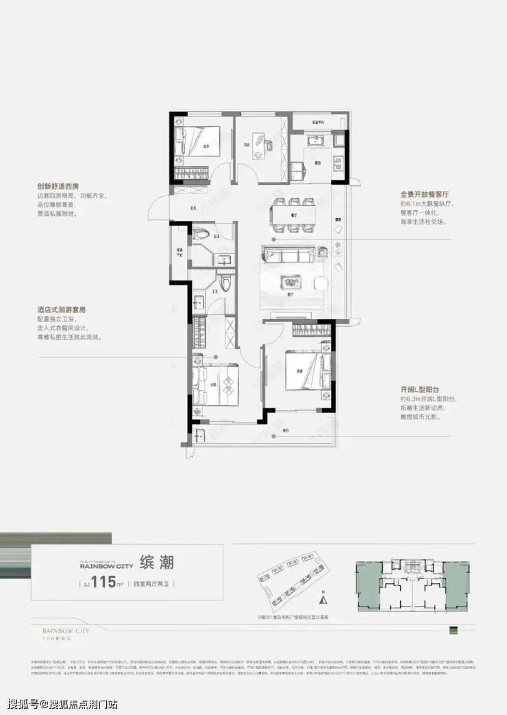 全知道了解到,虹缤之都北区仅剩最后一幢6号楼清盘加推中,建面约96㎡三房、115㎡四房两大全能户型总价170万起精装交付今年买,明年住。