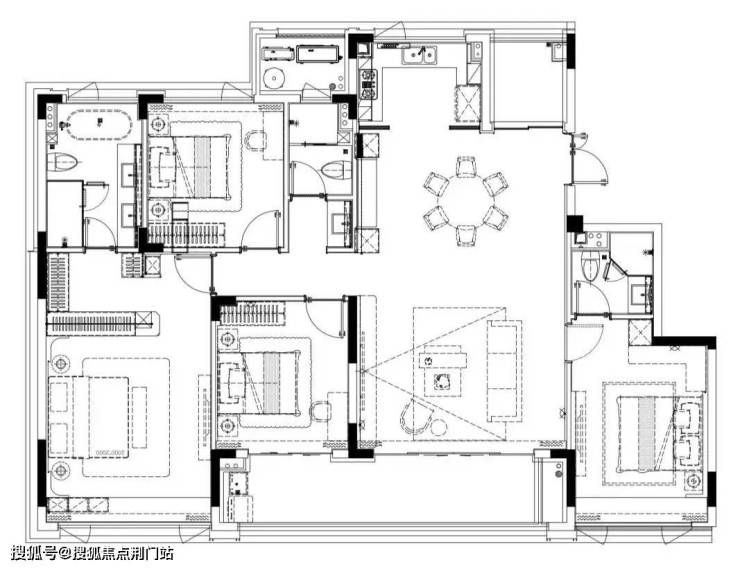 客厅+三卧朝南的结构最适合多人口家庭,男女主人、父母长辈、孩子都可以住朝南的房间,彻底实现“阳光平权”。