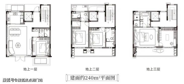 建面约240㎡的中间套,同样是大四房格局,二三楼都有宽约8.9米的跑道式阳台,四季美景循环播放。