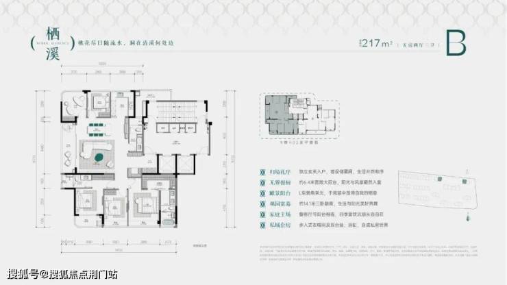 建面约217方则是更大亮点。以来可以弥补此前摇不中建面约241方和建面约238方的客户;二来本身5房的设计,能满足更为复杂的居住需求。三房朝南,餐客厅居中,又连通一个侧向大阳台,更加宽餐客厅视野,构成中岛景观效应。
