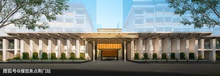 先看项目大门,我们会震撼于超200米宽的酒店式门仪、最高约7米的尺度,惊艳于16根柱廊序列的典雅气质,心仪于紫金琉璃背景墙、玉石纹理的透光材质的浪漫神韵。