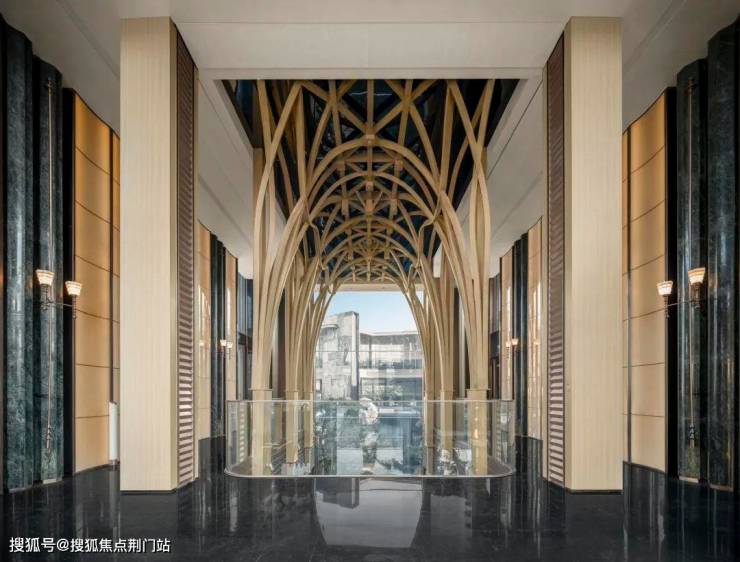 ✅门庭礼序:43米恢弘大门+12米挑高穹顶大堂,黑松迎客、铜门启户,归家即显贵胄仪式感。