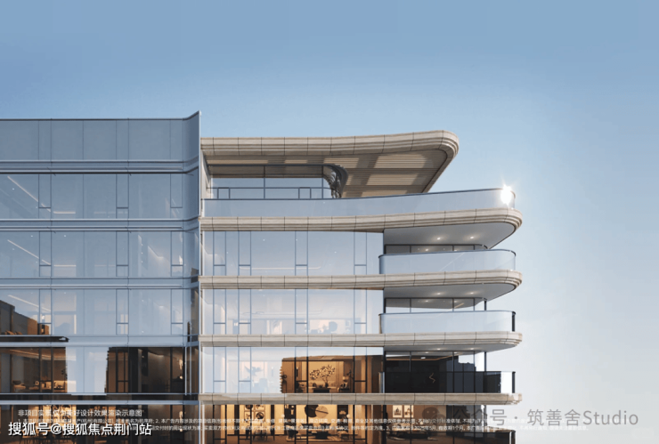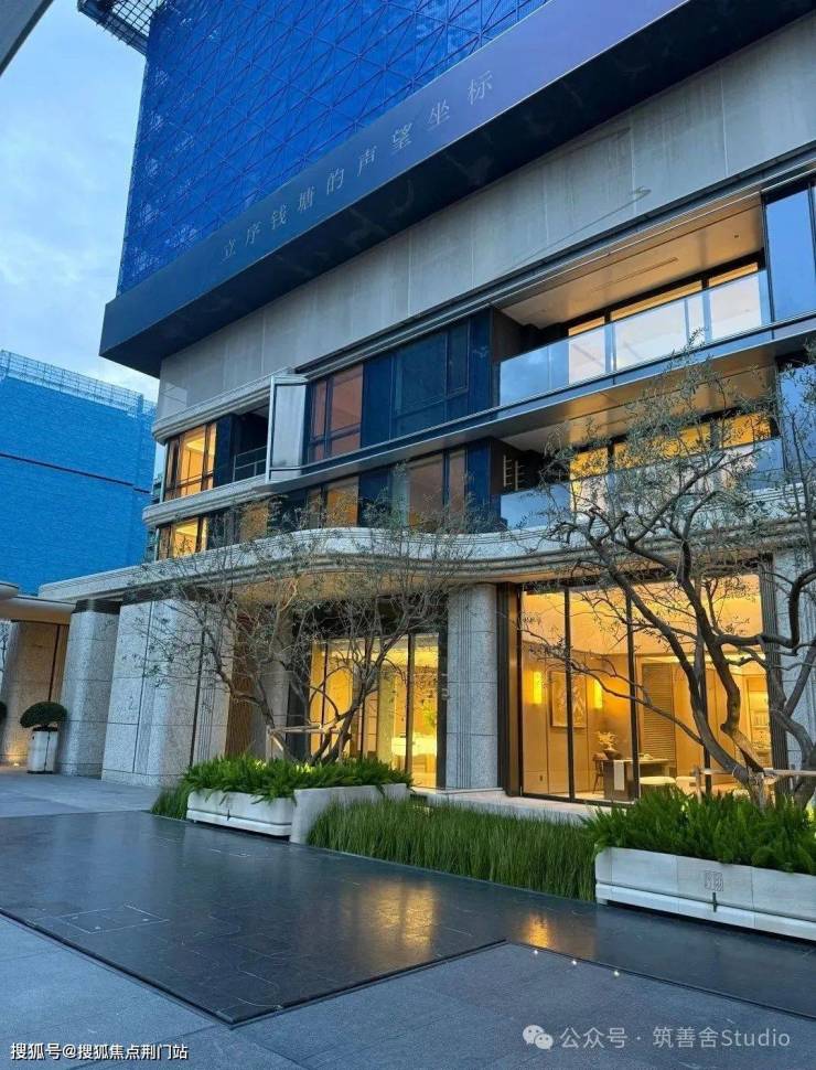 建筑高层立面精选白世茂石材、宽阔玻璃与铝板,打造出一场双曲面石材与弧面玻璃的视觉魔法盛宴。区别于流行的“全面屏”设计,该立面采用石材勾勒水平线条,转角处巧妙转化为四层倒角的大圆弧,宛如波涛汹涌的雪浪,层层递进,直至屋顶——其设计之巧妙,远胜弧形铝板。不仅转角处的落地玻璃窗采用弧形设计,连阳台的玻璃栏板亦然。更独具匠心的是,银色风帆式幕墙飘板,灵感源自“涌动的江潮”,巧妙融合钱江潮水的激情与江南丝绸的柔美,刚柔并济,相得益彰。