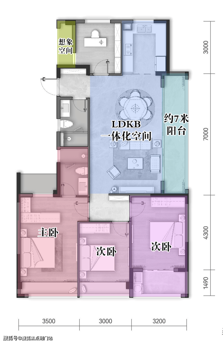建面约109㎡的户型:与南向面宽等长的双开间阳台,轻松实现主、次卧的阳光平权;一体式LDK+约6米飘窗台,空间游刃有余、张力十足;独立储蓄空间是“家的收纳师”,让生活秩序井然、得心应手。