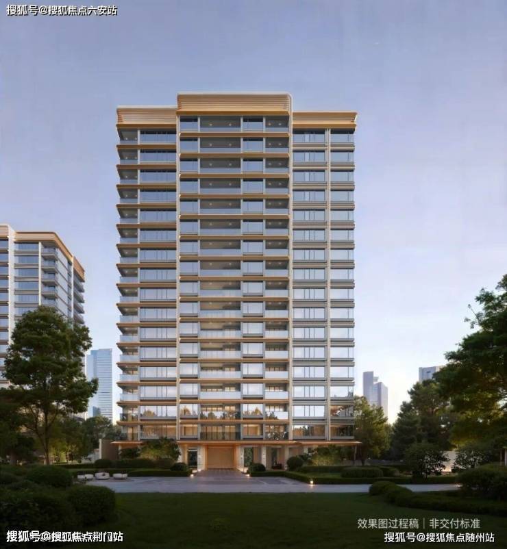 潮映杭园的建筑外立面采用铝板搭配大面玻璃和金色格栅顶冠,公建化立面设计展现出现代简约的美学风格。在材质选择上,项目选用玻璃、金属板材和石材,拒绝使用涂料或面砖,保证了立面的持久如新。这种对材质的严格要求,体现了项目高端的品质定位。