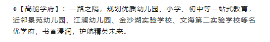 ◎【城市公园】:金沙湖公园、沿江湿地公园,热带风情休闲景观打造杭州“小三亚”、环湖慢跑道、金沙大剧院、金沙湖沙滩、文化艺术广场等已全部开放。