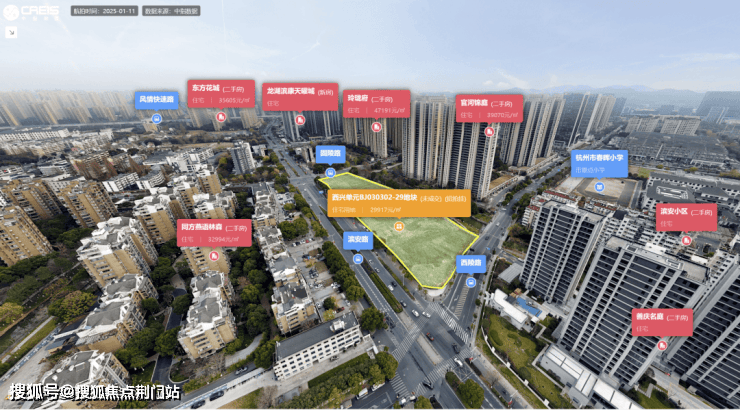 没错,就是2025年2月20日,滨江经过85轮竞价,以13.8124亿元总价,约4.3万/平楼面价,43.69%溢价率竞得的西兴单元BJ030302-29地块!
