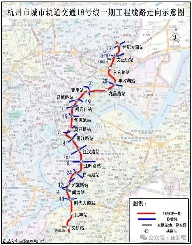 星桥站一站换乘18号线(世纪大道-义桥, 预计2028年通车)途经永玄路,丰收湖,笕桥,钱江新城,滨江白马湖等区域,实现城市繁华的无界联通。