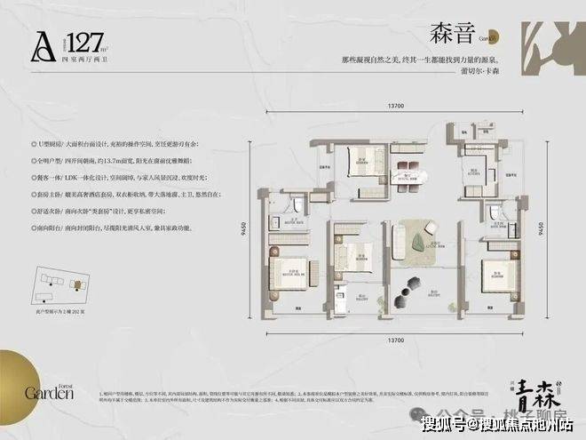 户型面积:约127-135-138㎡森系华宅