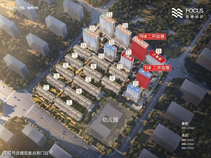 君潮润府一共规划有9幢高层和12幢叠墅,北高南低排布。