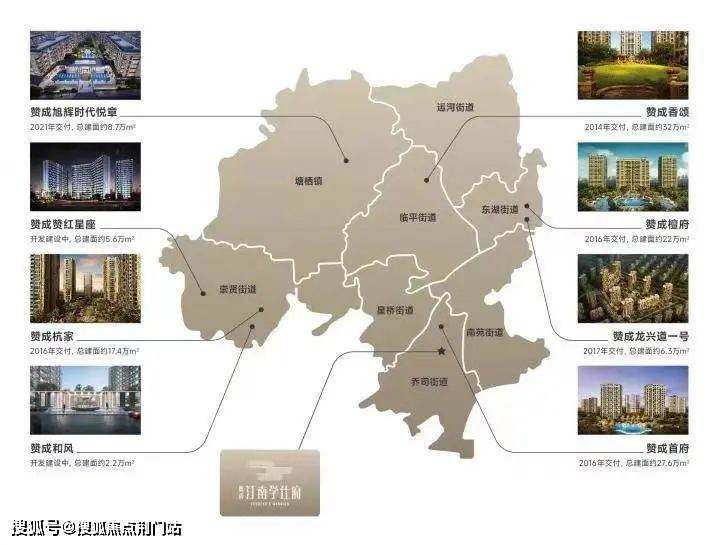 9盘耀临平 130万方总开发量2010年,赞成集团入主临平区主城,陆续开发了赞成檀府、赞成首府、赞成香颂、赞成杭家、赞成龙兴道一号、赞成和风、赞成赞红星座、赞成旭辉时代悦章等众多高品质楼盘。时隔13载,赞成集团再度以代表作-赞成汀南学仕府,入主临平南融杭州主城板块,致力于打造文脉与现代、城市与自然,和谐包容,相互共生的地标级作品。