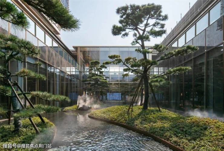 走进春棠雅韵府的实景示范区,就像是在繁华都市的喧嚣中,寻到了一处承载东方美学的人间秘境。步入下沉庭院,五棵苍劲挺拔的黑松端庄迎客,水面如凝固的碧玉,让飞瀑流云仿佛在此定格。